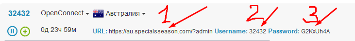 - После получаем данные для подключения, которые необходимо внести в OpenConnect GUI