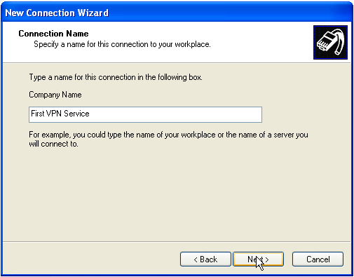 6. Вводим "First VPN Service", именно с таким названием будет созданно подключение